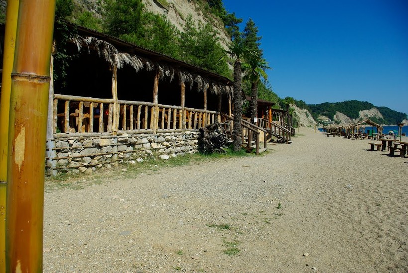 Очень популярное кафе "Тропиканка". Отличное расположение в реликтовых пицундских соснах прямо на берегу моря. Открытое летнее кафе с деревянными столами и лавками, готовят очень вкусные лодочки и хачапури