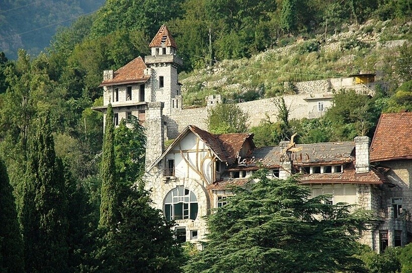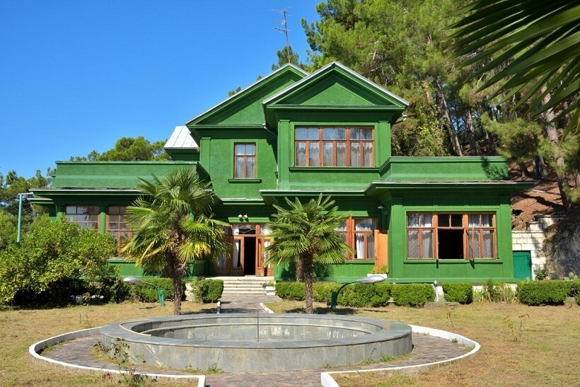 Изначально на месте дачи Сталина на озере Рица в Абхазии был небольшой домик для приезжающих на охоту представителей правительственной верхушки. В 1947 году Иосиф Виссарионович отдает приказ построить на его месте резиденцию — дачу. Особняк гармонично вписался в естественный ландшафт: его сложно заметить издалека. И это не случайно, ведь глава Советского Союза страдал некоторыми психическими расстройствами, в том числе и манией преследования. По этой причине вопросы безопасности стояли на первом месте. Стены дома выкрашены зеленой краской и выглядят так же, как и 70 лет назад.