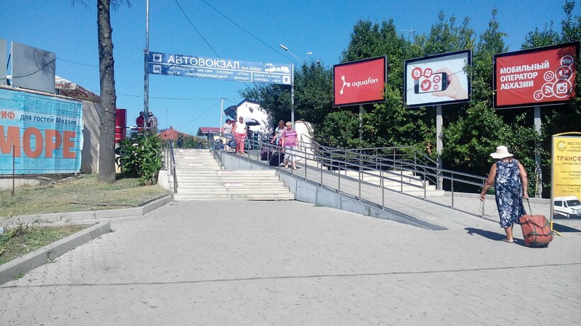 После осуществления всех пограничных проверок (границу туристы пересекают пешком), от КПП с абхазской стороны пройдите 500 м до автостанции Псоу. Отсюда с 7 утра до 8 вечера с интервалом в 20–30 минут отправляются маршрутки в Гагрский район. Поездка до курорта занимает около 1 часа и стоит 100 ₽.