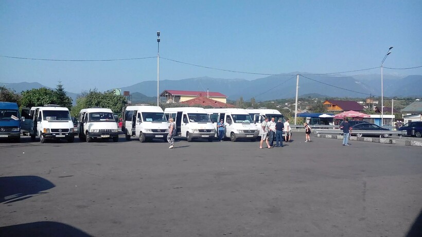 После того как вы пройдете паспортный контроль, вы увидите каменную лестницу, ведущую на небольшую площадь. Там расположен местный автовокзал, где стоят маршрутки, идущие на все абхазские курорты. Номеров у них нет, поэтому просто ищите ту, у которой будет табличка с нужной вам надписью. Четкого расписания у транспорта нет, он отправляется в путь по мере заполнения.