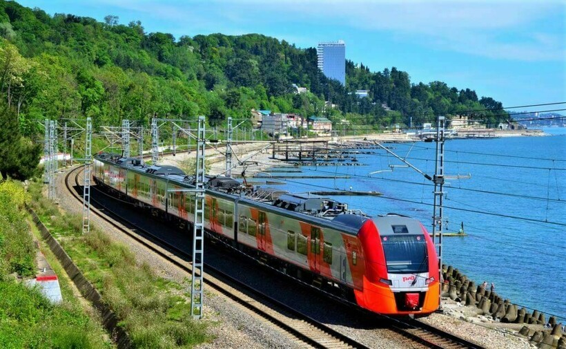 На поездах Сочи — Абхазия расстояние между адлерским и новоафонским железнодорожными вокзалами можно преодолеть за 4,5–5 часов. Круглый год по маршруту курсирует поезд № 305М Москва — Сухум по следующему расписанию: