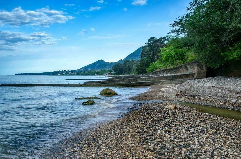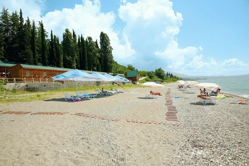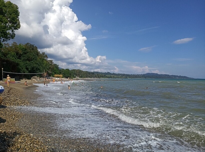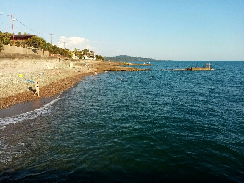 В поселке Гуандра, неподалеку от Нового Афона, берег галечный, местами — с песком. Здесь нет волнорезов, удобств, но тишины и уединения достаточно. На этом берегу можно побыть наедине с собой, с шумом волн.