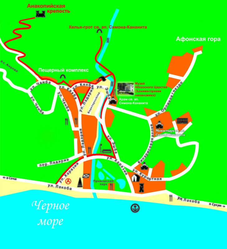 На территории Нового Афона располагалась древняя Анакопия. Здесь проживало древнее племя абазги — предки современных абхазов. Это крупное сооружение познало и пышный расцвет и упадок. Еще в древние времена абазги построили здесь очень сильное укрепление и враги не смогли одолеть неприступность этого места.