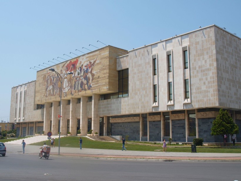 В Тиране большая часть международных автобусов отправляется с обратной стороны здания национального музея на площади Скандербега.