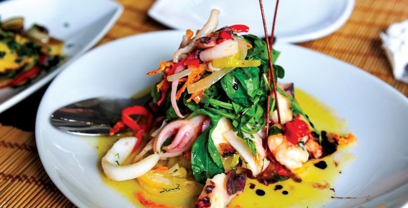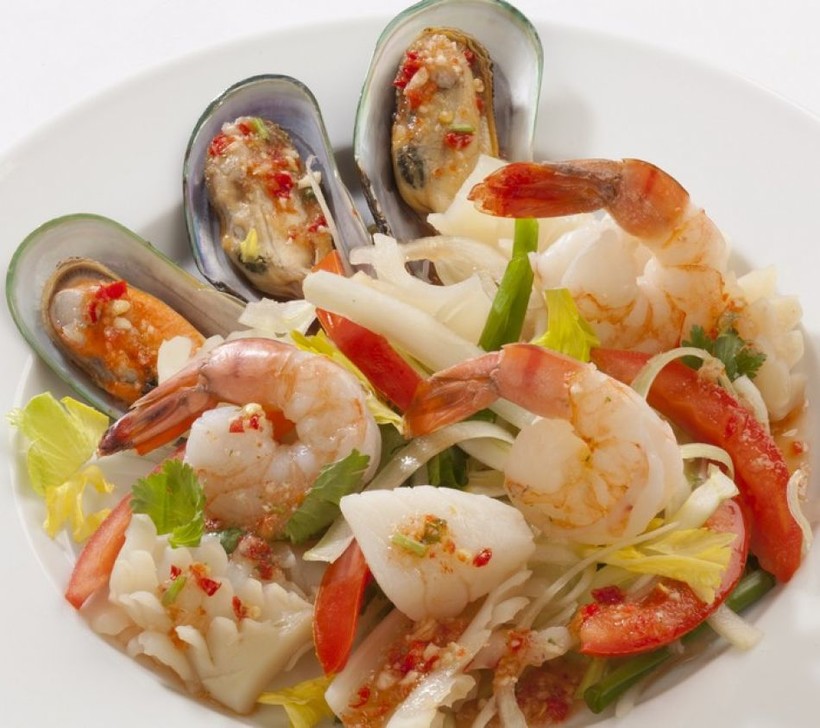 - Салат из морепродуктов. В идеале это должна быть большая тарелка зеленого салата с большим количеством разнообразных морепродуктов и лимоном. Свежие и очень доступные по цене.