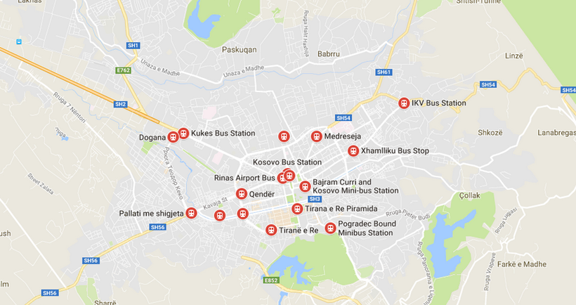 Международные автобусы в Тирану редки и дороги (минимальная стоимость начинается от 35 EUR в одну сторону). Однако и внутриалбанское автобусные перемещения не лишено проблем. Несмотря на то, что в виду отсутствия железнодорожного сообщения у Тираны, автобусы являются основным межгородским транспортом, в автобусных отправлениях наблюдается хаос. Во-первых, большинство автобусов ужасно старые и некомфортные. Во-вторых, по моему опыту, автобус почти никогда не отправляются и не приходят вовремя. В-третьих, строительство нового автобусного вокзала затягивается и приходится пользоваться временными станциями с ужасной инфраструктурой. На мой взгляд, самое неприятное — это то, что их несколько. Благо все автобусные станции имеют четкую привязку к городу назначения, поэтому, купив билет, обязательно уточняйте адрес станции.