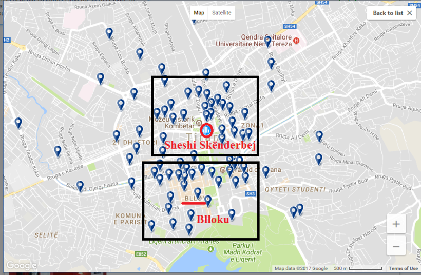 Условно все многообразие вариантов жилья в Тиране можно разделить на две зоны: окрестности центральной площади (Sheshi Skënderbej) и окрестности района Blloku.