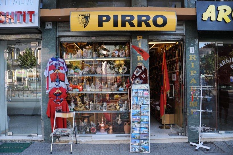 Сувенирные лавки Тираны полны албанских национальных сувениров: изображений албанского флага и предметов в виде бункеров. Для того, чтобы найти именно тиранские сувениры, я бы посоветовала отправится в сувенирный магазин при Национальном историческом музее, где выбор сувениров гораздо разнообразнее. Например, здесь можно найти открытки с изображением оттоманской Тираны или модели Пирамиды. Большой выбор сувениров также представлен в магазинчике Pirro. Также советую заглянуть в магазин Lleshi на улице Durrësit, где можно купить одежду с фольклорными мотивами. Как и всё остальное, сувениры в Тиране дешевые: например, за 5 EUR можно приобрести магнит, брелок, открытку и кружку.