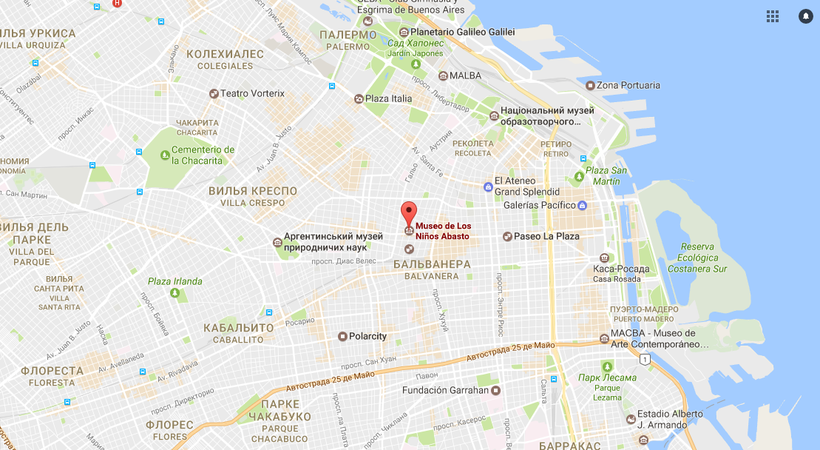 - Детский музей (El Museo de los Niños), Av. Corrientes, 3247. Его огромный плюс в том, что он расположен в большом торговом центре, где мамы могут спокойно провести полдня, пока их чада заняты в музее. Открыт с 10:00 до 18:00, вход стоит 10 USD.