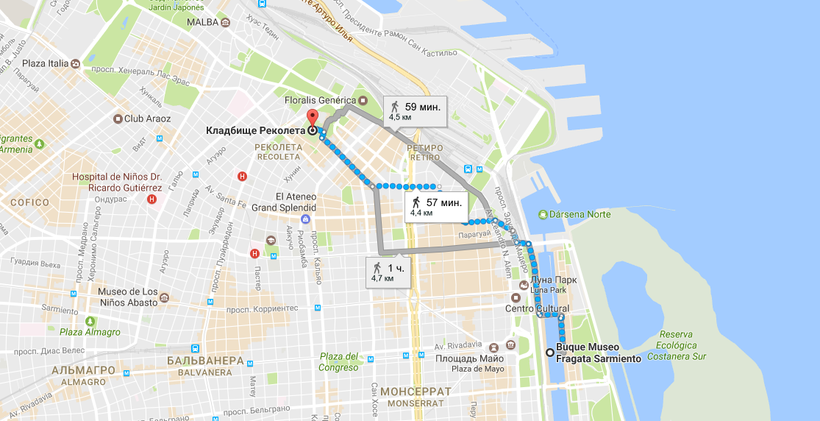 Буэнос-Айрес — большой город. Прогулка из одного района в другой может занять около часа пешком, но из-за пробок это может быть иногда даже быстрее, чем добираться на автобусе или такси.