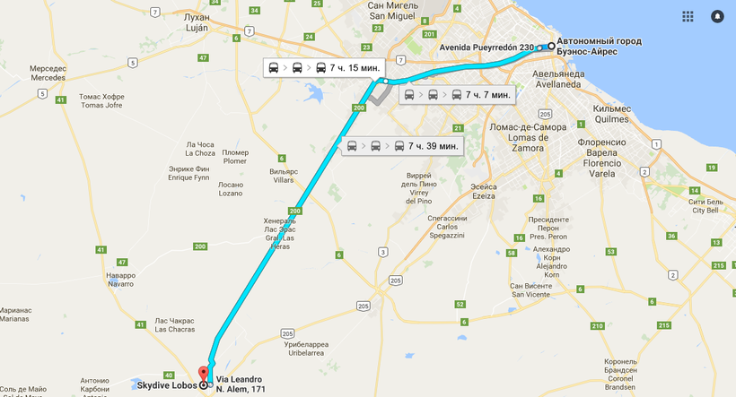 - Skydive Lobos (Ruta Nacional 205, Buenos Aires, Ruta 205 Km) — 107 километров от центра, самостоятельно можно добраться не только на машине, но и на электричке (правда, дорога займет часов 7). Для этого на станции Once нужно сесть на электричку до Moreno, выйти на станции Merlo, пересесть на поезд до Lobos и ехать до станции Via Leandro N. Alem, 171.