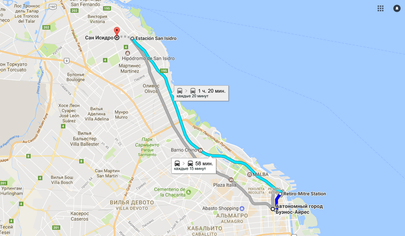 Главная транспортная развязка находится на вокзале Retiro (Ретиро).