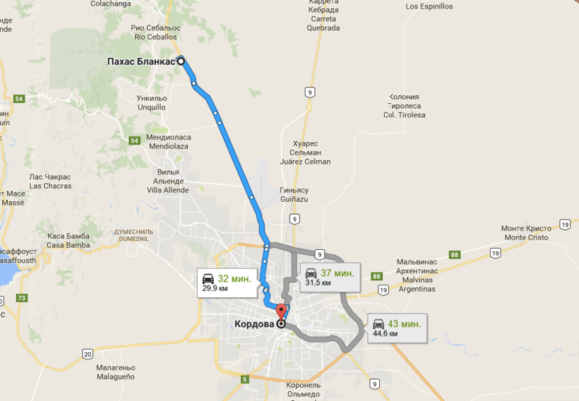 В/из Кордобы также удобно добраться из Сальты (время в пути — 12 часов, 23USD/360 ARS) и Росарио (время в пути — 6 часов/ стоимость варьируется в зависимости от компании).