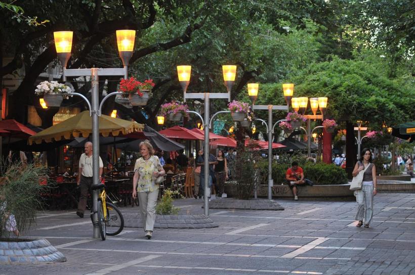 - Прогуляться по 5 основным площадям: центр довольно безопасный, так что ничего страшного, если вы походите там в вечернее время. Диковато читать такое из безопасной Европы, да? О безопасности ниже. Основной маршрут примерно такой, он может варьироваться от расположения отеля. Если вы останавливаетесь в Мендосе на один день, настоятельно рекомендую не экономить на расположении отеля, а выбирать центральную часть города.