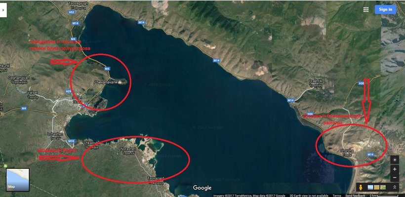 западный берег Севана славится изумительными видами. Здесь кстати находится также Норашенский заповедник и «Остров чаек», о которых вы уже знаете.Многие пляжи на этом берегу принадлежат отелям, но есть и бесплатные. Учтите только, что на западном берегу немалое число скалистых пляжей, без плавного захода. В принципе, на западном берегу все так называемые неприватизированные пляжи не имеют инфраструктуры и особых удобств. Они подойдут любителям диких, необлюбованных туристами пляжей.