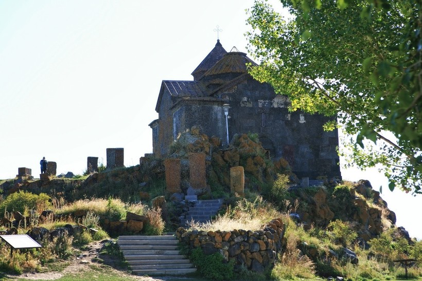 Монастырский комплекс Севанаванк — главная достопримечательность и самый посещаемый монастырь Севана. Простой и аскетичный, он примечателен тем, что полностью построен из массивных блоков черного туфа, который очень сложно поддается резьбе, обработке и полировке.
