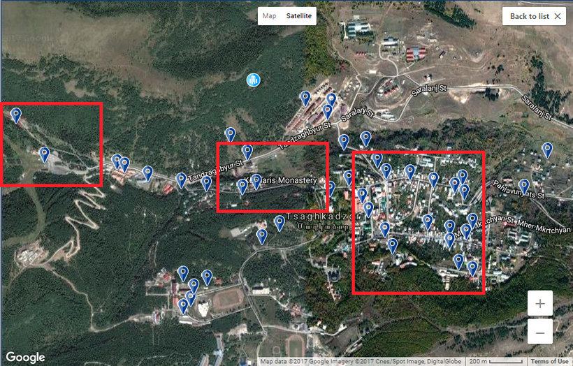 Так, в непосредственной близости от монастыря расположены отели и коттеджные дома Kecharis, Russia, Splendor, Villadzor, Ripa и некоторые другие. Недалеко также находятся отели Elegant и Marriott Tsaghkadzor (кстати, одни из самых лучших, на мой взгляд, в Цахкадзоре).