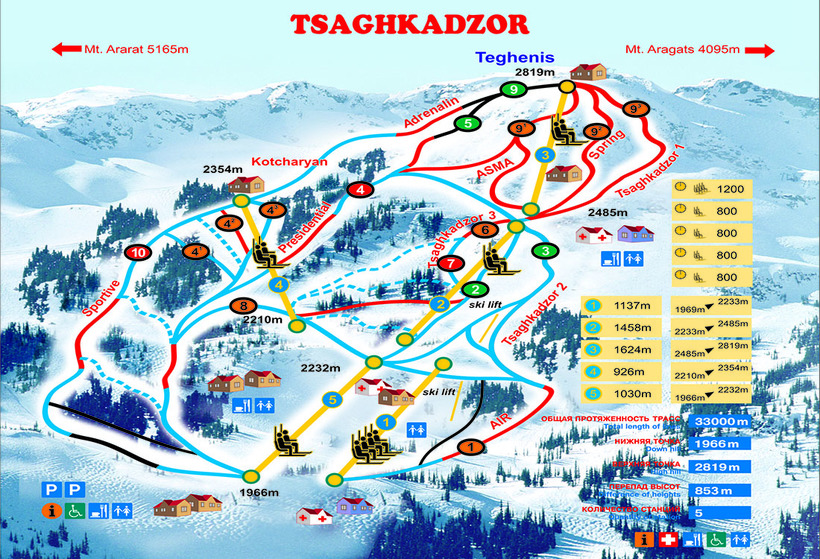 Cамое важное, на мой взгляд, то, что Цахкадзор идеально подходит как детям, так и взрослым, так как зона катания расположилась между высотами 1966 и 2819, которые включают 15 различных по сложности трасс. О них я подробнее расскажу чуть ниже.