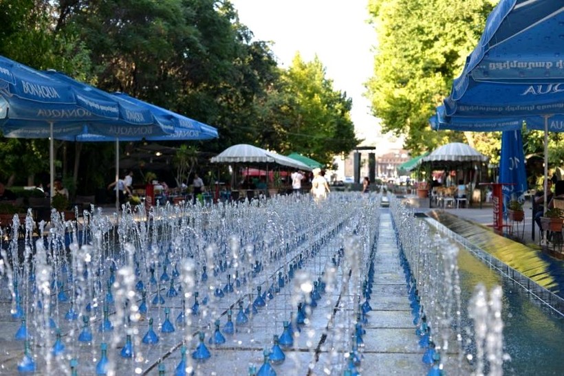 - Так к площади примыкает небольшой бульвар и сквер, соединяющий ее с улицей Италии. Бульвар этот примечателен тем, что здесь в 1968 году был установлен ансамбль из 2750 небольших фонтанчиков, имеющих символическое значение – возраст Еревана на тот год.