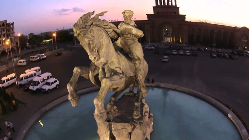 Первое, что вы заметите, как только доедите до вокзала Еревана – это величественная статуя Сасунци Давида (Давида Сасунского), героя древнего армянского эпоса «Неистовые из Сасуна» («Сасна Црер»). В нем рассказывается история юноши, защищающего свою Родину от арабских захватчиков в неравной борьбе. Одна из самых любимых мною поэм, датируемая 8 веком, в письменном виде впервые появилась в 1873 году. Она доступна и на русском, поэтому, если вас заинтересует, то, думаю, ее можно найти в Сети.