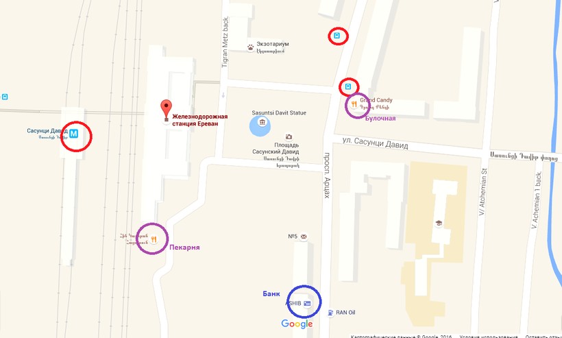 Отмечу поподробнее, как можно добраться до ж/д вокзала Еревана: