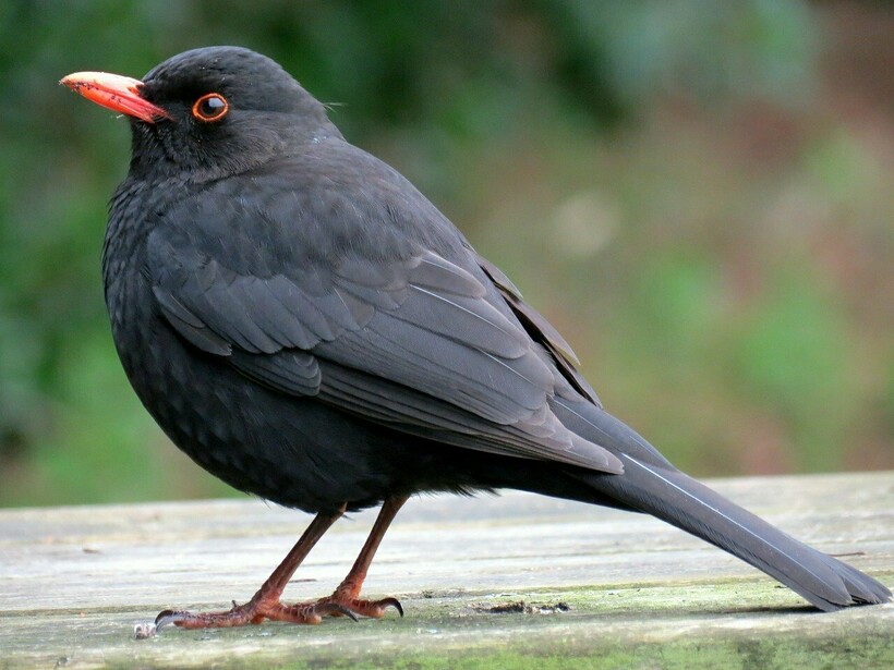 - Черный дрозд отличается красивым голосом, самцы имеют черное оперение и яркий желтый клюв. У самок более неприметный серый окрас.