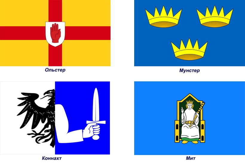 - Мунстер (Манстер) — в лазоревом поле три золотые короны;