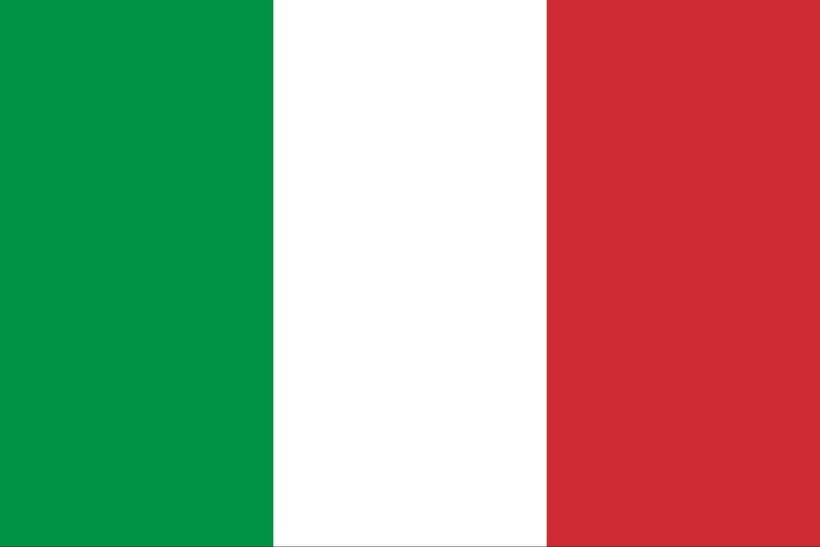 Флаг Италии имеет отличные от ирландского соотношения сторон — 2:3, но последовательность и расцветка первых двух полос у этих штандартов полностью идентичны, но вместо оранжевого цвета итальянцы используют алый.