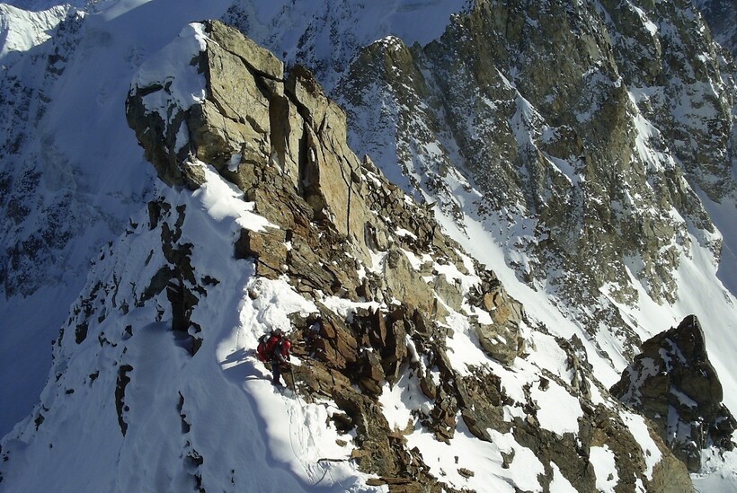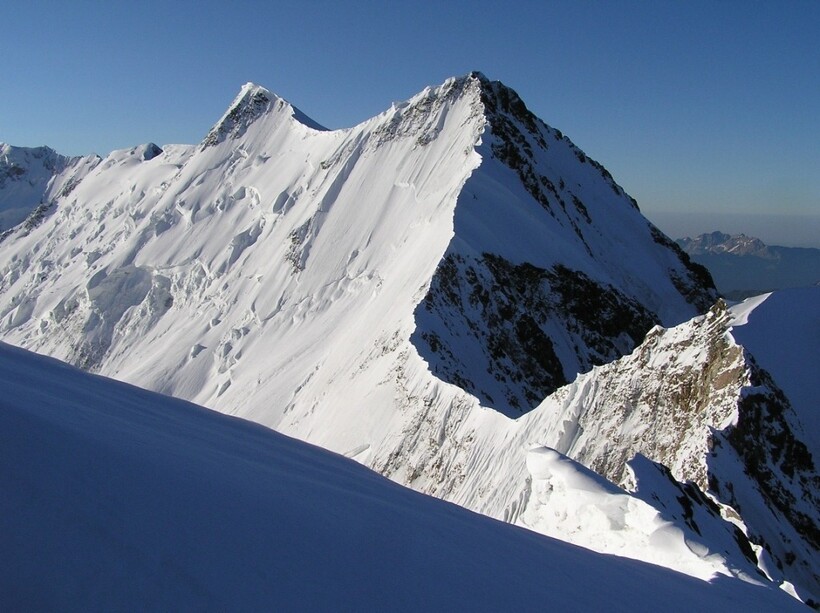 Дальнейший путь до вершины по снежному гребню считается простым. На вершине восходителей ждет прекрасный вид на Безенгийское ущелье.