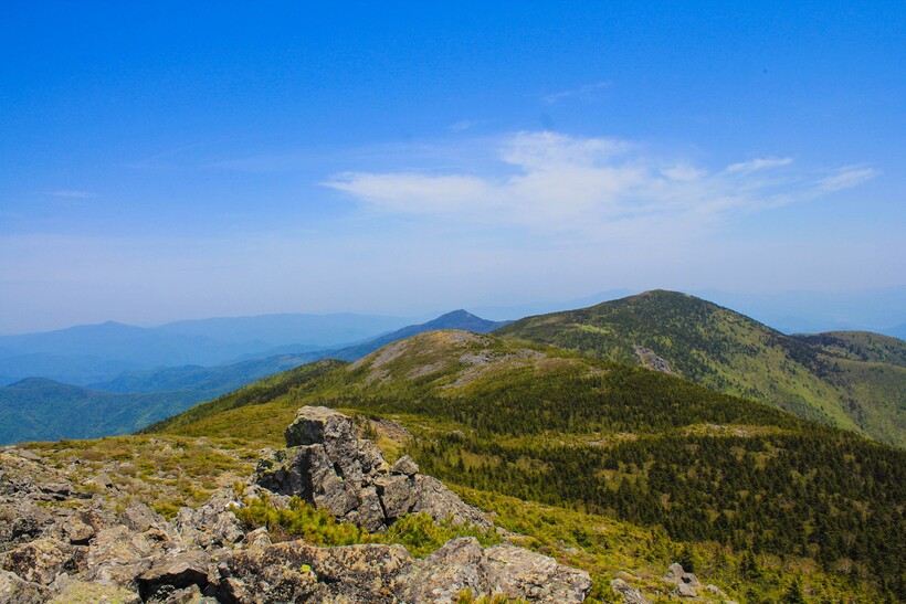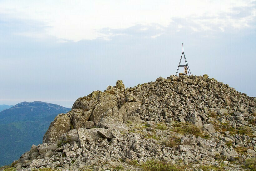 За 200 м перед вершиной находится сложный каменистый участок, где растут только редкие ели. Здесь важно следить за разметкой маршрута, чтобы не сбиться с пути. Затем маршрут ведет через большие валуны, покрытые кедровым стлаником. Сама вершина тоже каменистая. Первым в конце пути попадается православный крест. На самой высокой точке расположен тригонометрический пункт и памятник в честь освободителей Приморья от белогвардейцев в виде алюминиевой стелы с надписями. Покорившие вершину получают вознаграждение — внутреннее удовлетворение и чудесные виды. Отсюда хорошо видны пики соседних гор: Облачной, Снежной, Сестры, Макарова, Лысой.