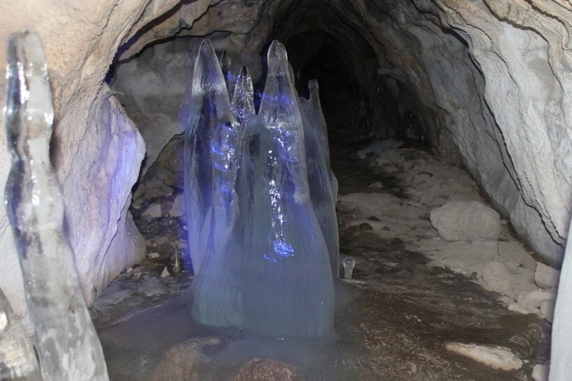 Вторая пещера называется «Кабарга», она отличается узорчатыми стенами с желтоватым налетом. Своим названием пещера обязана найденным в ней останкам редкого животного — кабарги. Зимой на ее стенах появляется наледь, с пола и потолка растут сталактиты и сталагмиты.