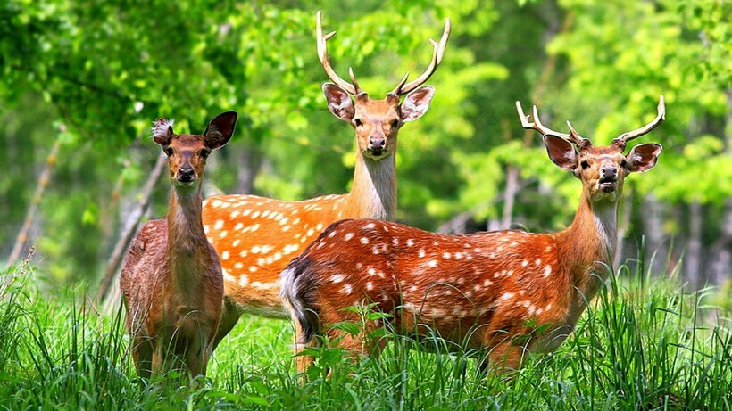 - пятнистого оленя, которого чуть было совсем не истребили к началу XX в. из-за рогов (восточные целители делали из растущих рогов, пантов, эликсир молодости);