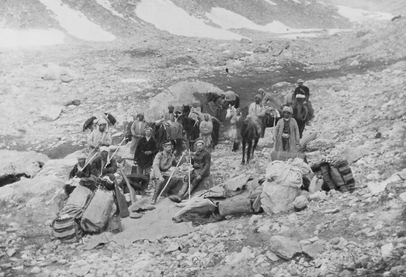 Первые географические экспедиции (из России, Германии) появились на Западном Памире в 1876 году. Алайские экспедиции русских военных (под руководством М. Скобелева, В. Ошанина) входили в ущелья горного района, видели на горизонте гигантские вершины, но не могли к ним подойти. Центр высокогорного района оставался «белым пятном» до начала XX века.