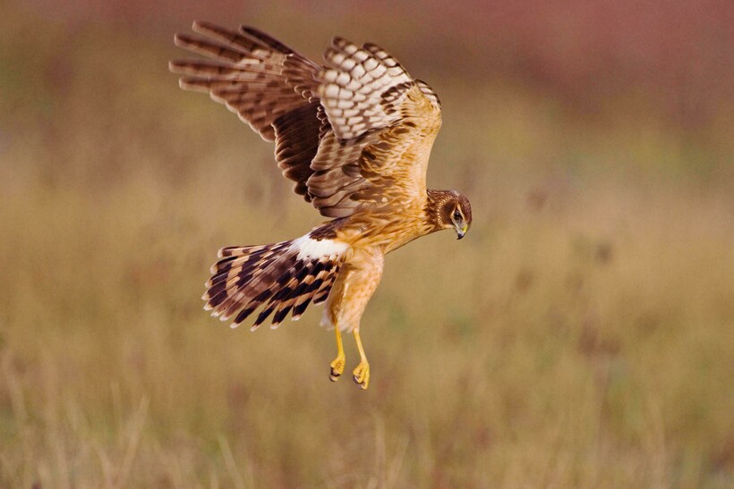 Посмотрите, как плавно парит лунь над бескрайним простором лугов, будто плывёт в воздушных волнах:
