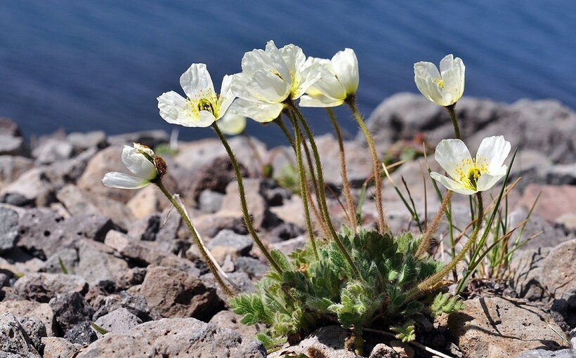 Растительный мир представлен большим разнообразием мхов и лишайников, не боящихся морозных зим. Из цветочных растений на севере растет полярная ива, мак, камнеломка, ползучая ива и ясколка.