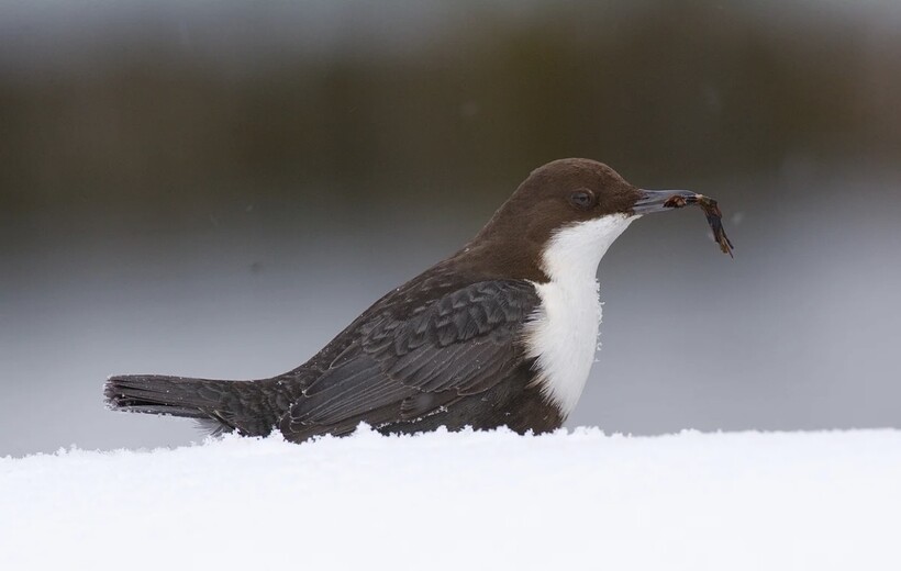 Оляпка ест всех живых организмов, которых может ухватить своим крохотным клювом: