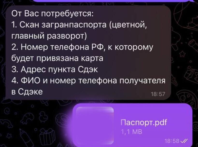 Как только мы определились, какая карта нам нужна, менеджер выслала перечень необходимой информации, которую нам нужно предоставить. Никаких доверенностей не нужно — только скан загранпаспорта! Очень удобно!