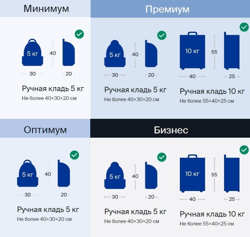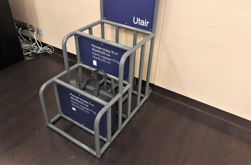 Согласно требованиям «Ютэйр», ручная кладь должна без каких-либо усилий помещаться на верхнюю полку в салоне или под кресло, стоящее перед вами. Чтобы отследить этот момент, компания практически в каждом аэропорту установила свои калибраторы. Пассажиры, которые приобрели билеты по самому дешевому тарифу, имеют право взять с собой на борт сумку весом до 5 кг, размеры которой не более 40×30×20 см. Если вы взяли билеты по более дорогим тарифам (премиального или бизнес-класса), вам можно пронести с собой в салон еще одну сумку, при условии, что ее вес не превышает 10 кг, а размер — 55×40×25 см.