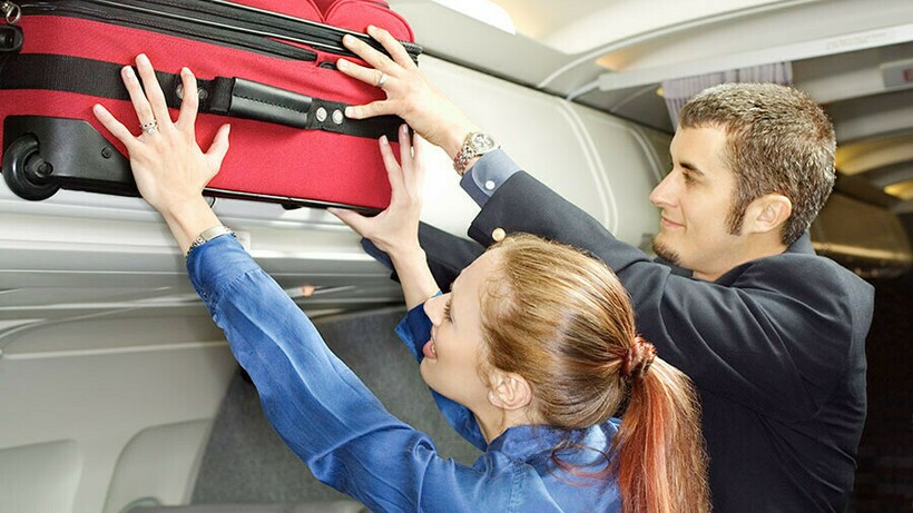 Кроме того, ваши сумки должны свободно помещаться на полке над сидениями или под кресло, стоящее впереди вас.