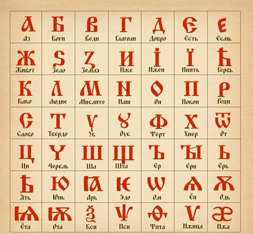 Из церковнославянской лексики сохранилось немного слов. Изменился даже алфавит и написание литер.
