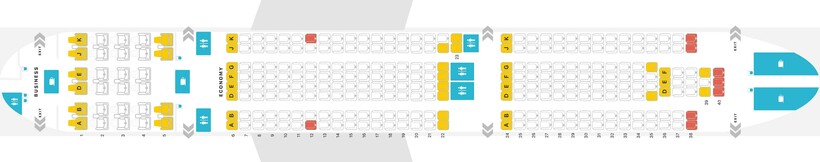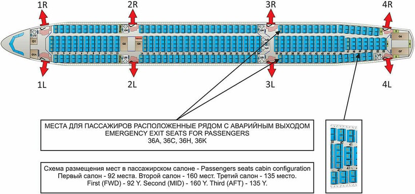 - 41 (G и D) — выступают в проход, их может задевать обслуживающий состав экипажа тележками с едой и другие пассажиры по пути в туалет.