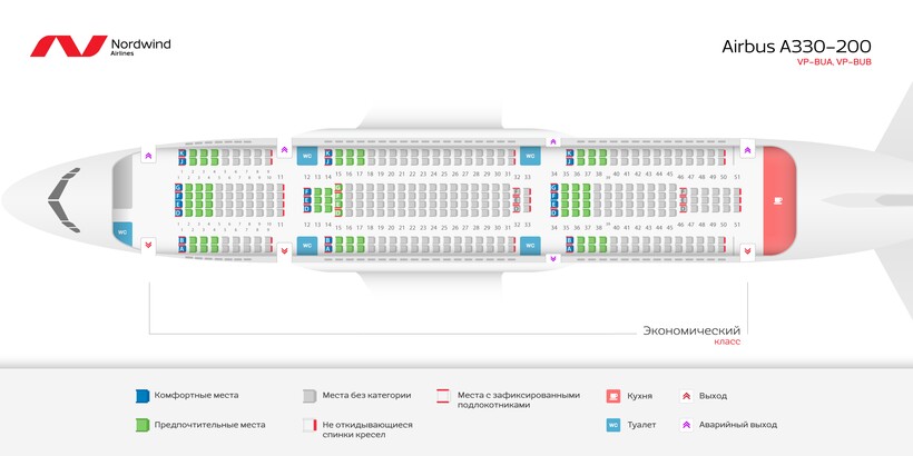 А330-200 (VP-BUA, VP-BUB). Количество посадочных мест в экономклассе — 361.