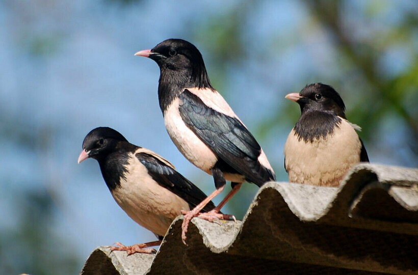 Для гнездования выберет расщелину в скале или воспользуется скворечником. Розовые скворцы очень общительные птицы и мирно уживаются в стае: поселяются большими колониями, устраивают гнёзда близко друг к другу и даже объединяются в стаи с воронами, воробьями и другими видами скворцов.