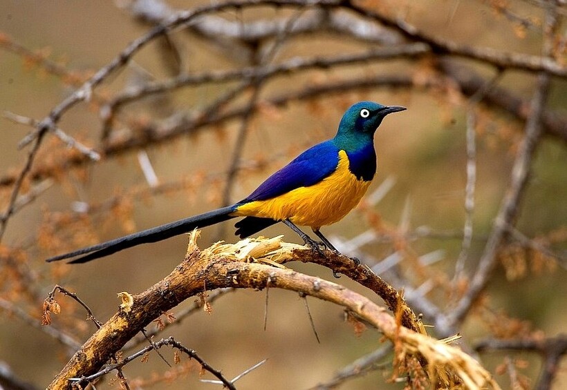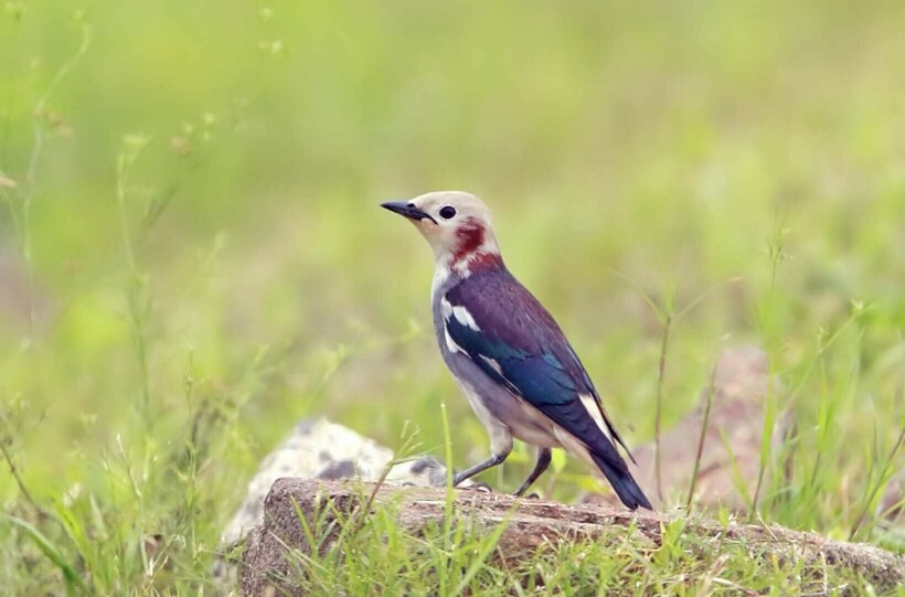 Этот экзотический вид обитает в африканской саванне и отличается блестящим оперением зелёного цвета с пурпурными фрагментами. Для гнездования выбирает кустовую растительность, но может селиться и в негустых низкорослых садах. Любит поедать муравьёв, клюёт местные фрукты и орехи.