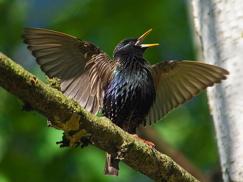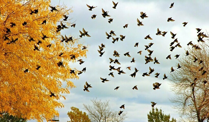 - Скворцы — социальные птицы, держатся стаями и часто селятся большими группами.