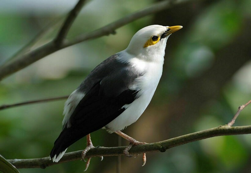 Чернокрылый скворец — певчая птица средней до 22 см величины с белым оперением туловища и чёрными крыльями и хвостом, причём оба пола выглядят одинаково. Родина этого вида — тропические острова Бали и Ява. Населяет равнинные пространства, покрытые травой: поля, пастбища, опушки лесов. Свой дом устраивает в скалах или дуплах местных тропических деревьев. Питается плодами фруктовых деревьев и насекомыми.