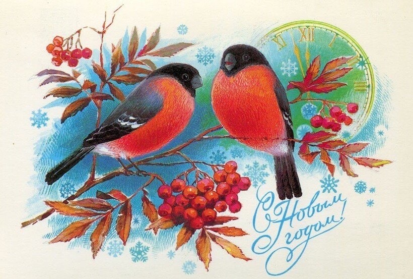 ИНТЕРЕСНЫЙ ФАКТ. Поскольку снегирь у многих ассоциируется с зимой, этот пернатый персонаж часто становился героем советских новогодних открыток.