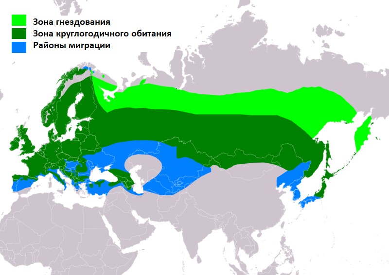 Уссурийский (Pyrrhula griseiventris). Распространен на Японских и Курильских островах, Сахалине и Дальнем Востоке. У самок этого вида оперение на шее насыщенно-красного оттенка.