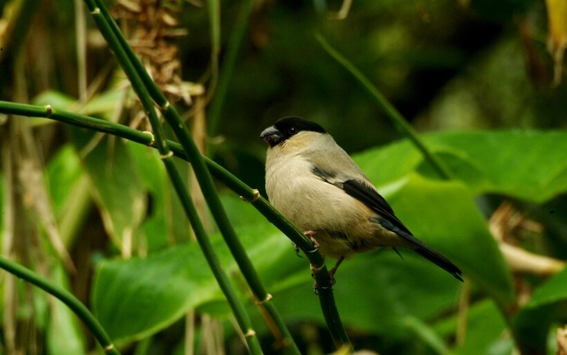 Бурый (Pyrrhula nipalensis). Масковый снегирь, распространен в Индокитае, Южной Азии и на Тайване. Оперение всего тела особи черно-коричневое.