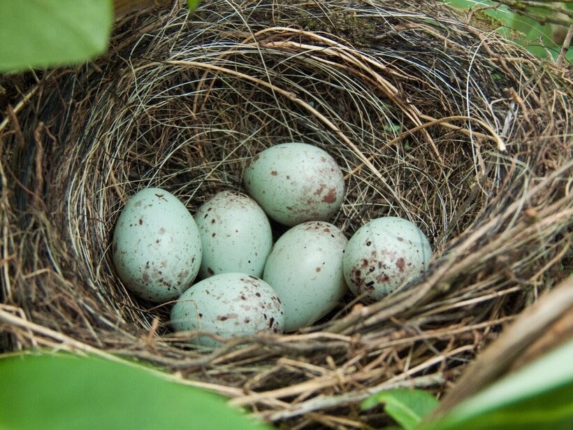 СОВЕТ. Пока самка не снесет все яйца (предположительно, 4–6), лучше их менять на муляжи, чтобы снегири их сами не повредили и не съели. После последнего снесенного яйца вернуть все на место и ждать птенцов. Вылупившееся потомство родители будут кормить имеющейся в клетке едой (семенами, ягодами и пр.) Можно добавить в рацион червей и опарышей. Снегирь в неволе живет меньше дикого — до 10–12 лет. И это при благоприятных условиях его содержания.
